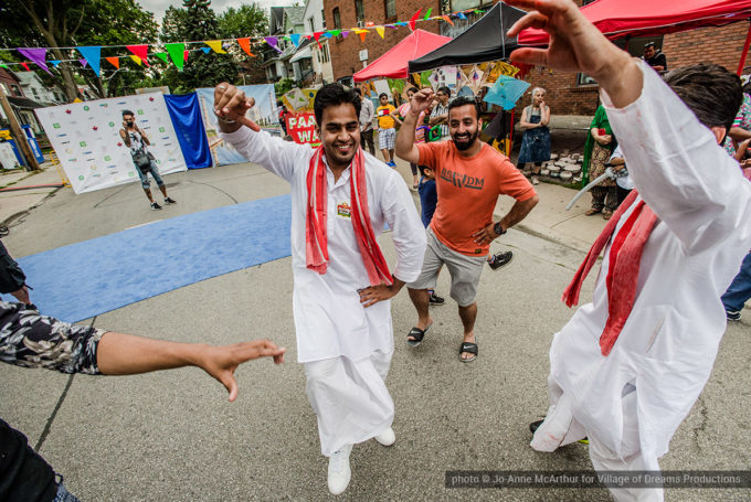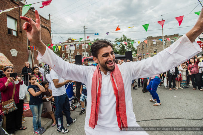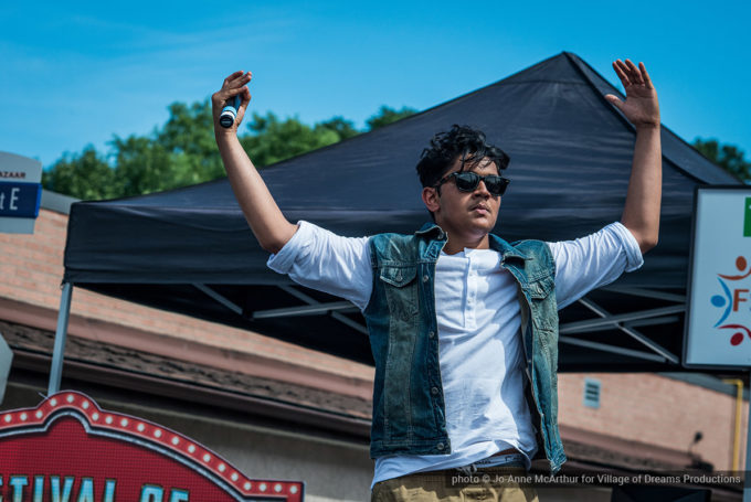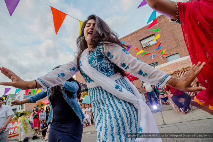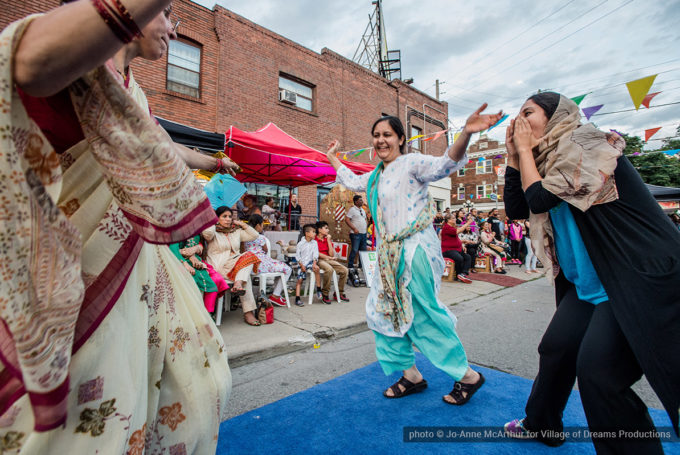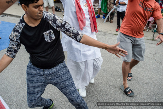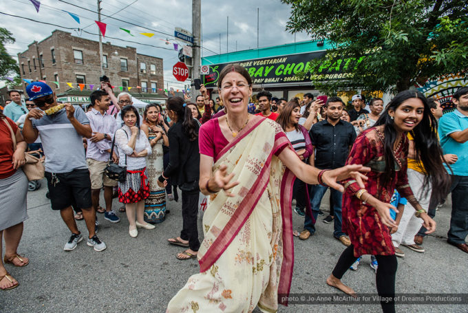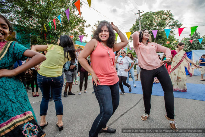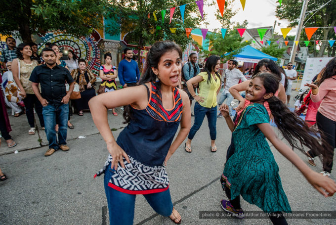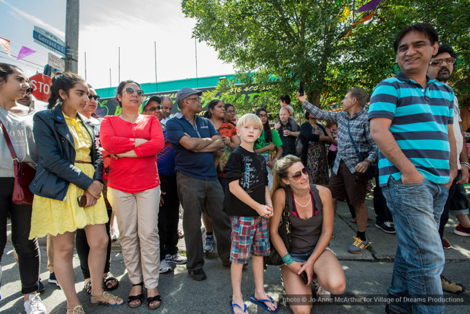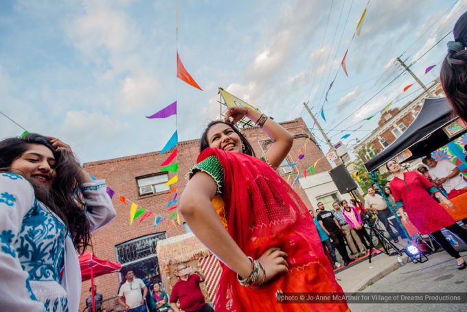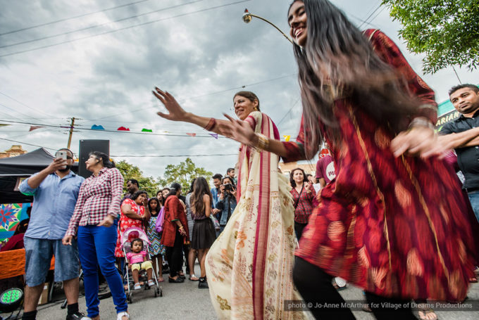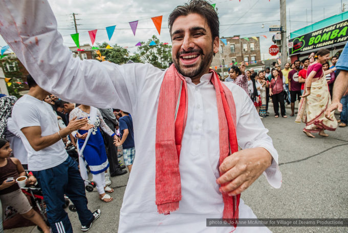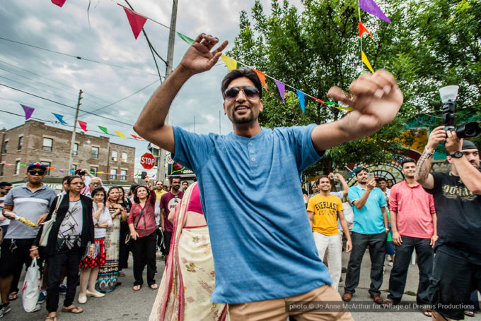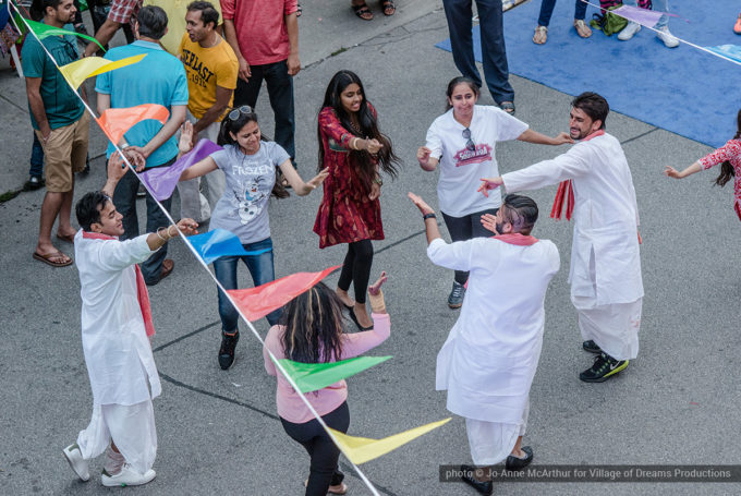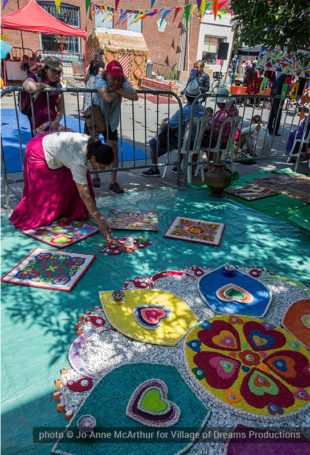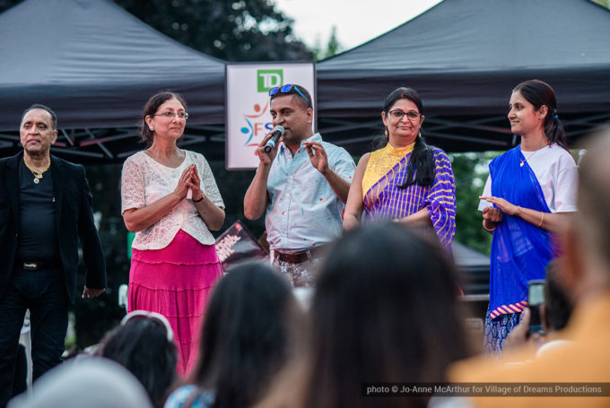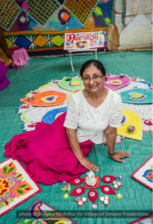 Festival Inauguration. Left to right: Chand Kapoor (BIA Chairman), Asha Aditi Ruparelia (Rangoli Artist), Tushar Unadkat (Festival Creative Director), Chinan Bhavsar, winner of the Rangoli competition (name unknown)